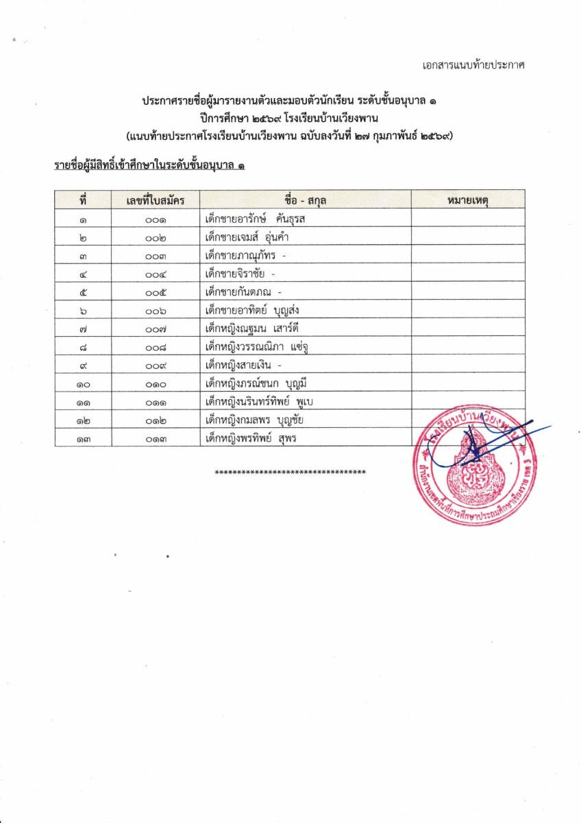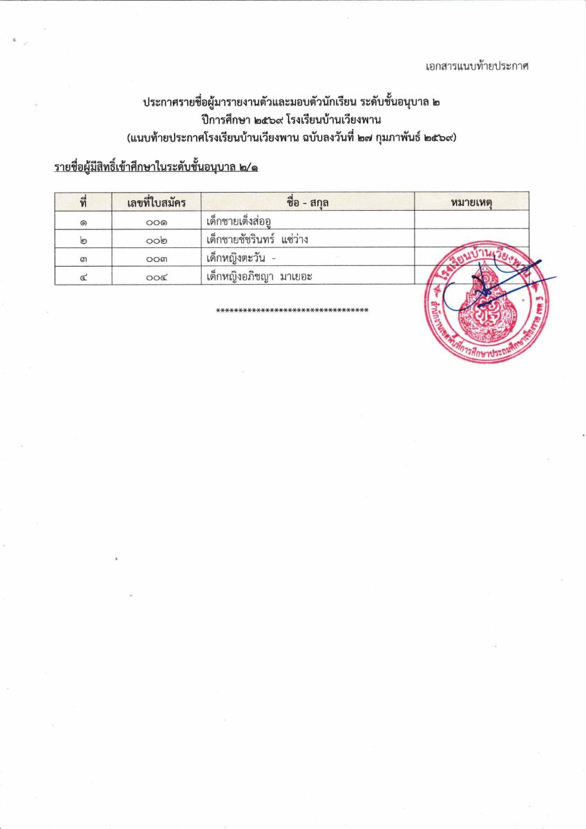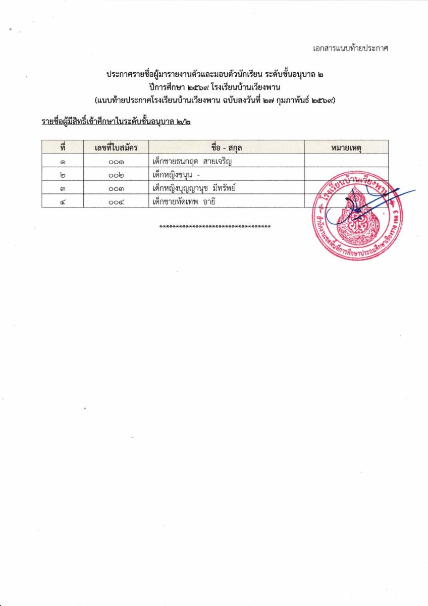 หลักสูตร รร.บ้านเวียงพาน