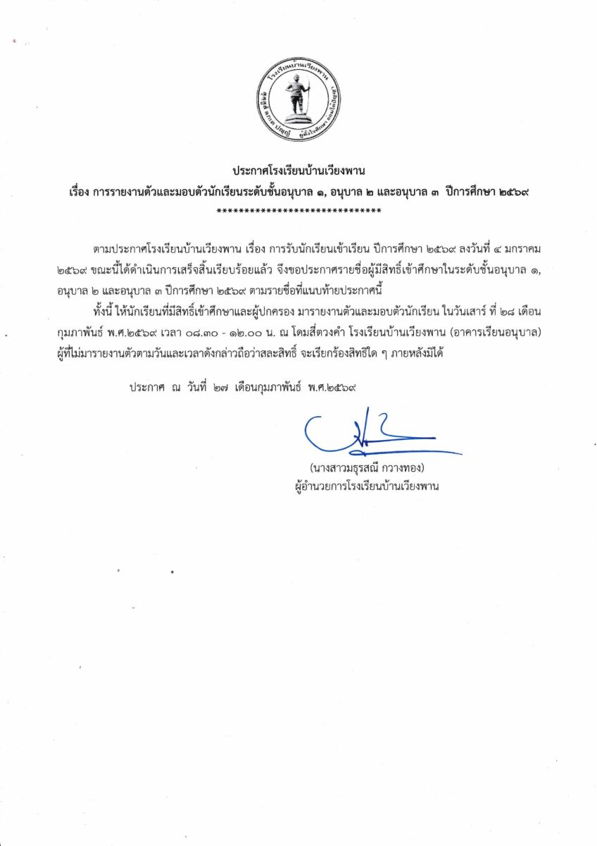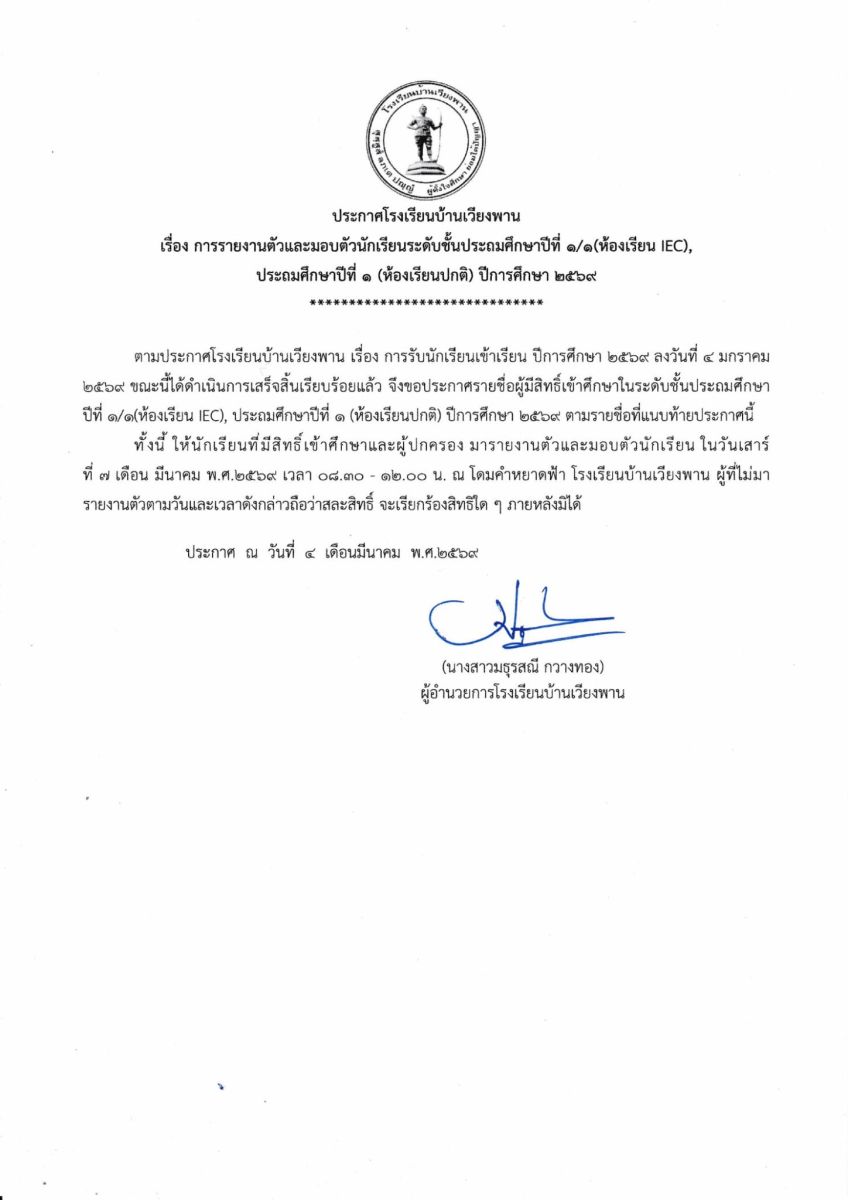 โรงเรียนบ้านเวียงพาน สำนักงานเขตพื้นที่การศึกษาประถมศึกษาเชียงรายเขต 3